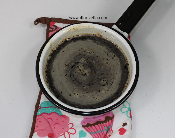 1. Mezclar el agua con el azúcar en una cacerola y calentar a fuego medio hasta que diluya toda el azúcar formando un jarabe simple. www.diorizella.com