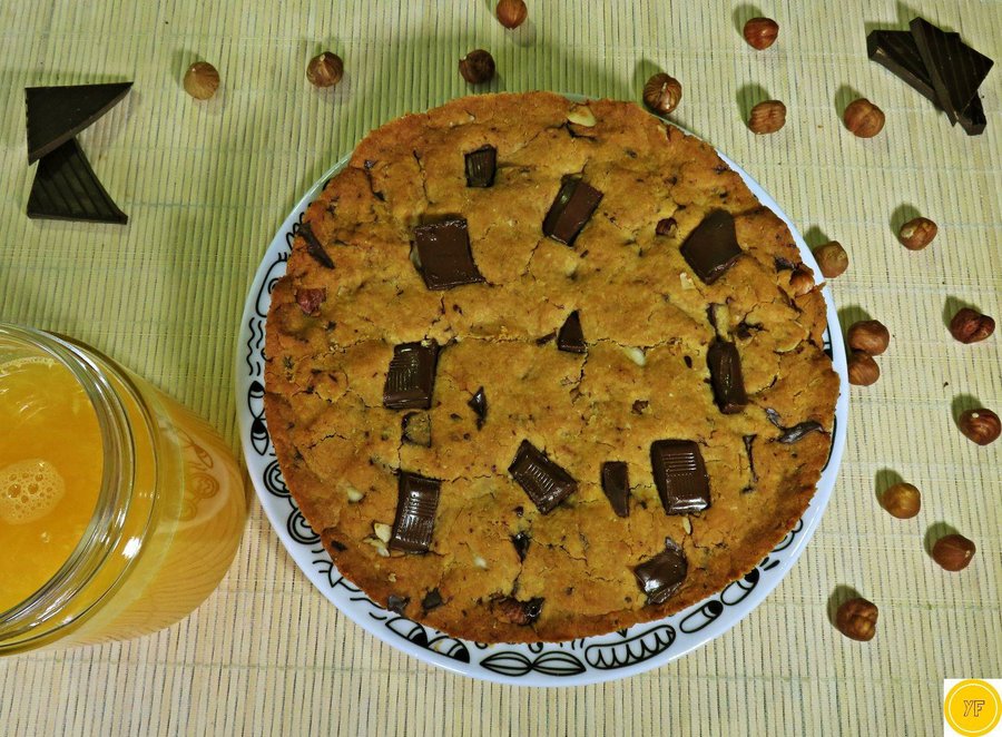 ¿Se imagina elaborar una super galleta sin huevo ni leche? Pues comparto con ustedes esta receta que encantará a los/as amantes de las galletas. Una mega-cookie con chocolate y avellanas, sin necesidad de utilizar huevo ni leche, y con ingredientes al alcance de todos/as.