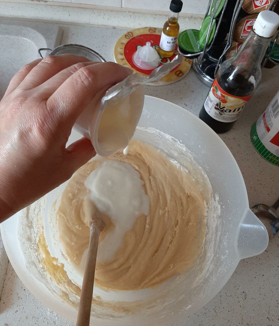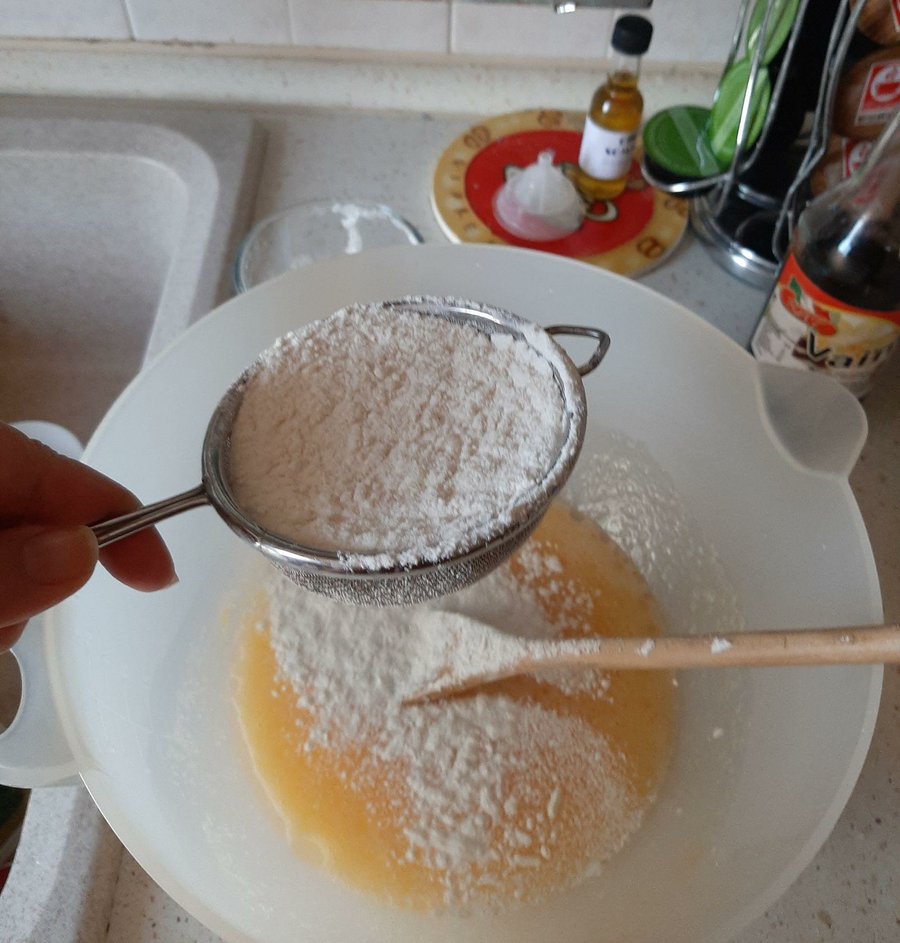 Como primera cosa agregamos las tres cucharadas de azúcar en un sartén antiadeherente para hacer el caramelo. y lo dejamos cocinar a fuego lento para que el azucar se vaya derriento poco a poco y obtengamos el caràcteristico color marròn caramelo.Agregamos los tres huevos enteros en bowl junto con la taza de azúcar y batimos bien, luego añadimos poco a poco el aceite y seguimos batiendo para unir bien estos ingredientes. Ahora es el momento de incorporar la harina. A mi me gusta cernirla porque de esta manera la mezcla se hace homogenea más fácilmente. Entonces vamos mezclando bien cada taza que agregamos. Una vez que hemos terminado con la harina incluimos el yogurt y volvemos a mezclar bien. Todo esto lo pueden hacer con la batidora, pero yo sigo a la antigua me encanta la cuchara de palo!!, y por último solo nos queda añadir la cucharadita de vainilla para darle ese sabor goloso y dulce!. Si quieren le pueden agregar algunas cucharaditas del jugo de la lata de la piña si la quieren màs dulce y golosa, yo particularmente la prefiero con un sabor dulce pero poco empalagoso porque de esta manera puedo sentir el sabor de resto de los ingredientes sin que èstos sean cubiertos por tanto dulce.
