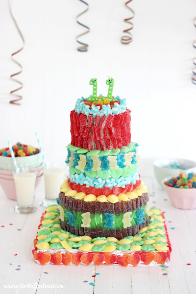 Estamos siempre acostumbrado a lo mismo, a la tartas tradicionales, pero esta es especial por que es un Rica tarta de golosinas.
