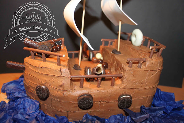 Tarta de chuches con forma de barco pirata