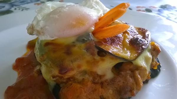 Procede a colar las berenjenas y espolvorear con sal de la siguiente manera, el cual se realiza para evitar que las berenjenas se oxiden y elimina el amargo que contienen. Después, agarra un colador preferiblemente de acero inoxidable, coloca una capa de rodajas de berenjenas y esparce suficiente sal, adiciona otra capa de berenjenas y agrega de nuevo sal, que queden cubiertas totalmente realiza el proceso con todas las rodajas de berenjenas hasta culminar.
