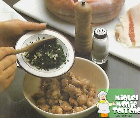 Una vez limpio el conejo, se abre y se rellena con la mezcla, desleída en un poco de leche.
