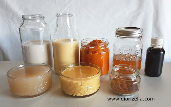 Necesitas los siguientes ingredientes: leche de coco, leche evaporada, puré de calabaza, caldo de especias, extracto de vainilla, crema de coco, leche condensada y especias de calabaza (pumpkin spice). Si deseas puedes agregar ron dorado o brandy.