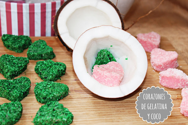 Se acerca el día de los enamorados y he querido hacer estos corazones de gelatina y coco para que puedas sorprender a tu pareja con un dulce muy especial.