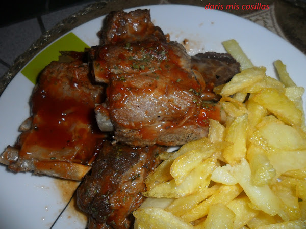 Podemos cocinar las costillas a la barbacoa, al horno a 200º c hasta que estyén doraditas , o en una sartén con un poco de aceite ; es cuestión de gusto.