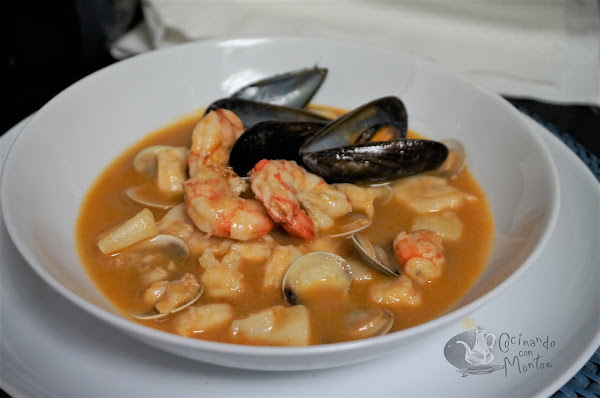 - marisco y pescado (puedes poner lo que más te guste, algún pescado como merluza o rape, y el marisco que prefieras, gambas, langostinos, mejillones, cigalas...)