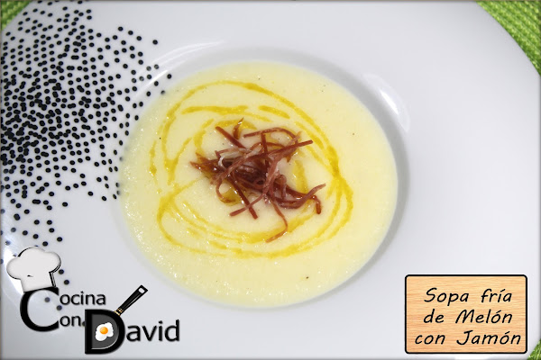 Con esta CREMA DE MELÓN FRÍA disfrutarás de una refrescante sopa con el delicioso sabor de virutas de jamón salteadas.