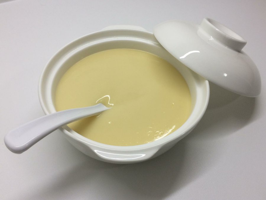 que se liga con fécula de maíz y con yemas de huevo, que ayudan a coagular la mezcla y aportan cremosidad y textura.