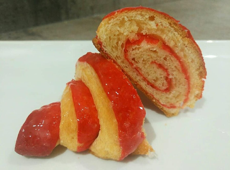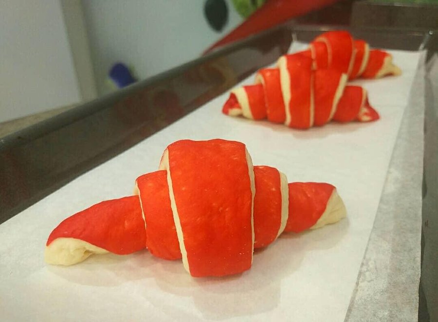 18. Realizar un pequeño corte en su base y enrollar para formar los croissants.