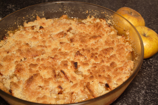 En inglés americano se llama Apple Crisp (por su textura crujiente) y en inglés británico es conocida por Apple Crumble. La receta es de Lauren, de Recetas americanas.com