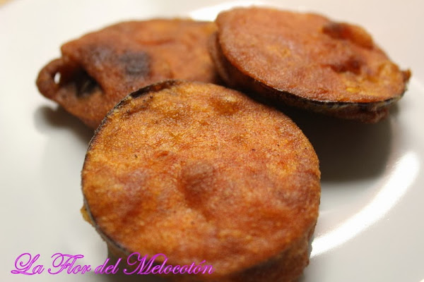 Esta es una de esas recetas que no probaría ni que me pagaran. Las berenjenas no me gustan nada de nada, pero como mi suegra las planta, pues de vez en cuando me da, sólo para su hijo, claro, porque el peque rara es la vez que come.Cada vez intento hacerlas diferente para que mi marido haga de conejillo de indias ;-)Estas os las recomienda, eso si recién hechas, porque luego el rebozado se queda b ...