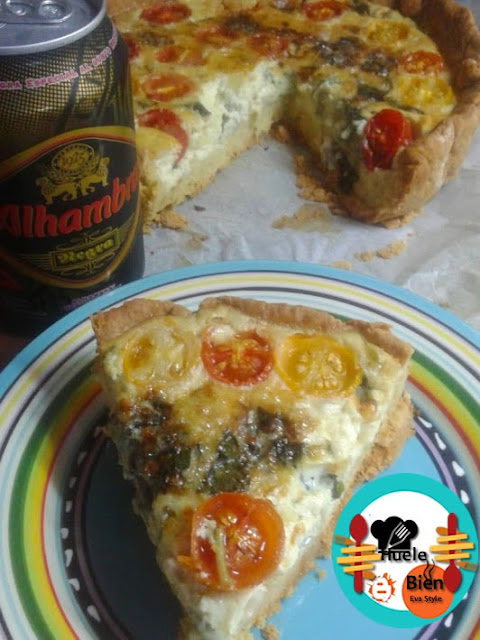 En el blog La cocina de Eva Style, su propietaria Eva nos muestra un pastel salado relleno de queso azul y tomatitos. Primero se prepara la base del pastel, con harina, huevo, orégano, sal y margarina, se amasa todo y se deja reposar 30 minutos. Luego se estira la masa, se extiende en un molde bajo y se deja reposar en la nevera. Mientras se prepara el relleno mezclando nata, huevos, sal, pimienta y maicena. Se saca la base del frigorífico y se rellena con esta mezcla. Se adorna con tomates cherry y albahaca y se hornea durante 20 minutos.