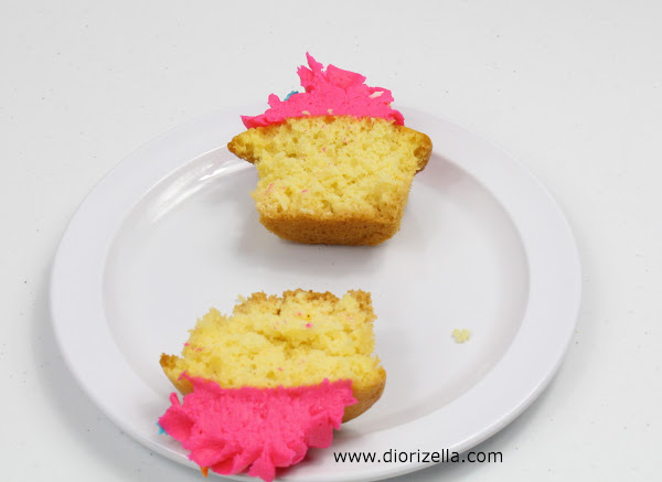 Los cupcakes quedan esponjosos. En la foto te muestro como se ven cuando se cortan por el centro. A continuación, te dejo el video con el tutorial para que tú puedas recrear estas bellezas.