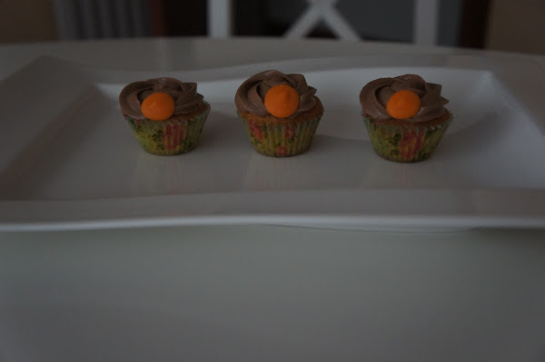Rellena las cápsulas de papel sin llenar más de 2/3 de su capacidad. Hornea a 160ºC durante 20-30 minutos. Comprueba que están listos pinchando el centro con una aguja, palillo o cuchillo si sale limpio es que están listos. Déjalos enfriar en la bandeja del horno durante 5 minutos, después pásalos a una rejilla para que terminen de enfriarse.