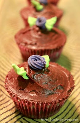 Decoré las seis primeras con ganache de chocolate negro (receta aquí), formando una rosa grande con