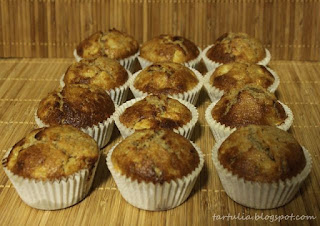 Preparamos las cápsulas en un molde de cupcakes, en teoría la masa es para 12, pero siempre que hago cupackes o muffins la masa me da para 15 ó 16, como en este caso, esto es todo un misterio ya que por mas estricta que sea en las medidas me ocurre, tambien da igual que sea un molde de muffins gigantes y la receta sea para 6, entonces me salen 8 y como veis en la siguiente foto las lleno bastante.