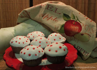 Todavia calientes cayó alguna y están espectaculares, hasta quienes no les gusta la tarta de manaza o la manzana cocinada se las comieron y repitieron. Escasa de tiempo que iba, decidí decorarlas rápido con fondant y quedaron unas cupackes muy folcloricas.