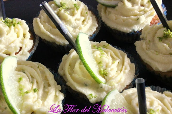 Hola!! hoy os traigo unos cupcakes... para adultos!! Unos cupcakes de mojiiito!!! estan de muerteeeMirad que deiliiciia!!!Ingredientes para 8 cupcakes de lima.2 huevos100g harina90g azúcar1 cucharada y media de levaduraun poco de leche3 cucharadas de zumo de lima, recien exprimido60g mantequillaralladura de 1 limaIngredientes para el frosting de mojito200g azucar glas180g mantequilla2 cucharadas s ...