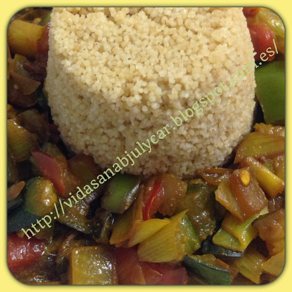 Cuando hayas terminado de cortar todas las verduras, ya se habrá hidratado el cus-cús.