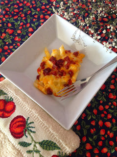 Patty del blog Patty's Cake nos acerca estos macarrones con chorizo que prepara combinando leche evaporada, nata (crema de leche), quesos y nuez moscada entre otros ingredientes. Colcoa los macarrones ya cocidos en una fuente para horno, mezcla los ingredientes, formanodo una crema y le añade el ingrediente "estrella", el chorizo troceado. Lleva al horno unos minutos y tiene un plato irrechazable, mmmmm... Para ver la receta al completo, pueden pinchar en el enlace del nombre de la misma.