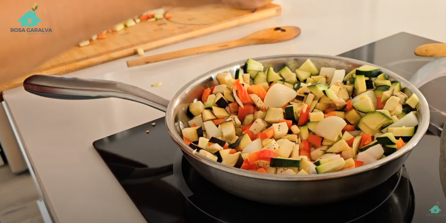 -En una sartén grande, sofreímos la verdura.