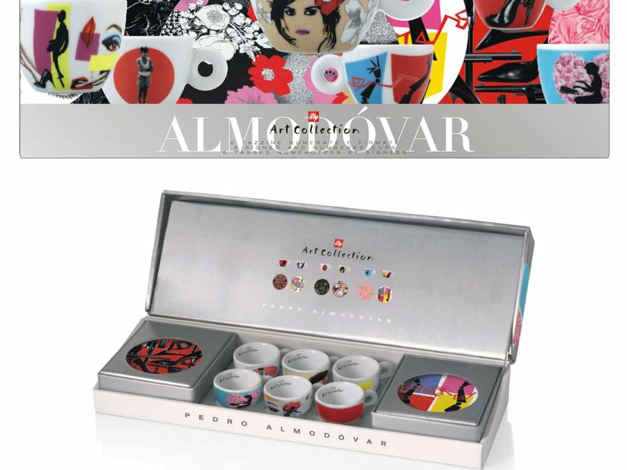 Para los que disfrutan de reuniones en torno a una taza de café, nada como esta sorprendente colección de tazas y platos. Se trata de la nueva Illy Art Collection, firmada por Pedro Almodóvar. Una colección compuesta de seis tazas, en la versión espresso y cappuccino. Representan un collage de imágenes y colores que trazan la carrera artística de Almodóvar a través de seis de sus películas más conocidas.