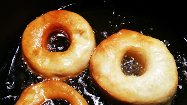 10. Ahora es el momento de freír los donuts. Primero a fuego fuerte que coja color y luego a fuego más bajo. Dales la vuelta muy a menudo mientras se doran. (No han de hacerse mucho porque sino la masa se endurecerá y no quedan tan sabrosos.)