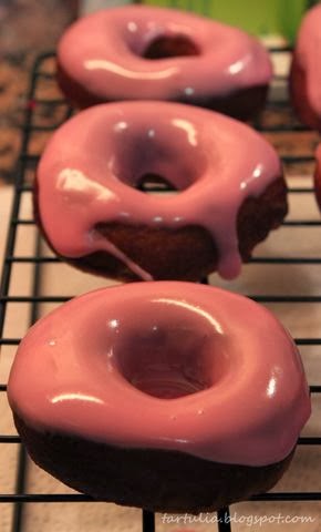 Dejaremos enfriar y podemos cubrirlos con glasa, espolvorearlos con azúcar o bien como hice yo, bañarlos en fondant liquido que teñí de rosado.