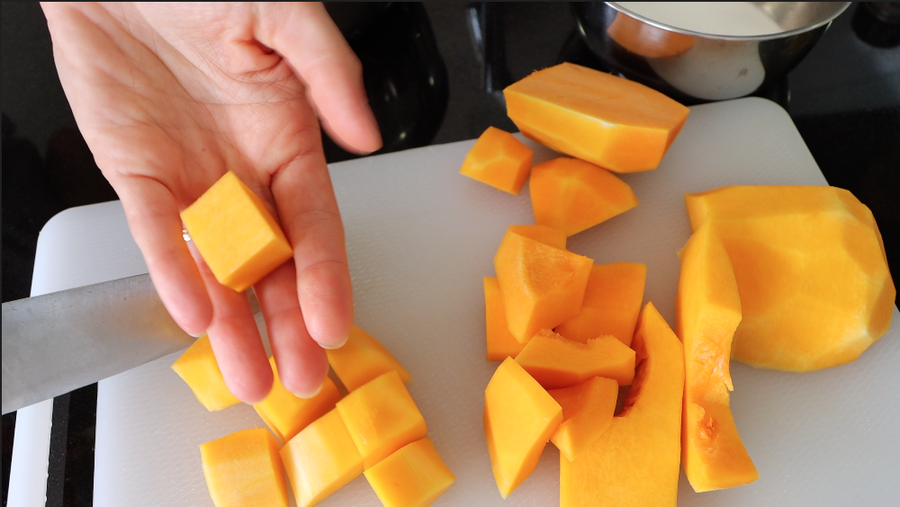 1. Cortar la calabaza en cubos de 2-3 cm de tamaño