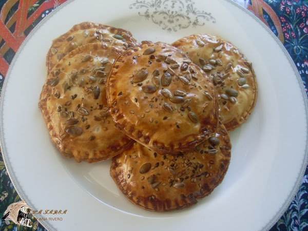 En cada oblea, untamos queso a las finas hierbas y ponemos 4 o 5 tacos de calabacín, hacemos la forma de empanadilla que más nos guste, echamos por encima de ésta oregano y al horno para disfrutarlas calentitas.