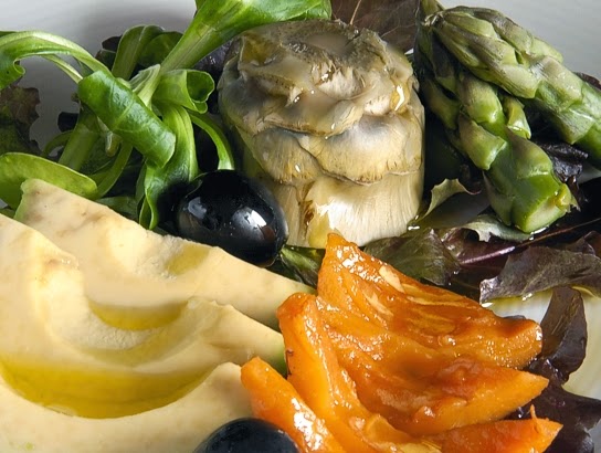 Hoy os propongo una ensalada que aprovecha dos verduras tan ricas en todos los sentidos de la palabra como son los espárragos y las alcachofas, ambos en plena temporada, aunque la de las alcachofas están ya a punto de terminar. Si las unimos con el siempre recomendable aguacate y añadimos el refrescante toque de los nísperos tendremos un plato capaz de hacer las delicias del más exigente. Una inyección de vitaminas y minerales esenciales para alegrar nuestro estómago. Y nuestra vista. Si aliñados con un buen chorro del mejor aceite de oliva virgen extra, y acompañamos con unas hojas de ensalada de su elección conseguiremos una ensalada de lujo. Hela aquí.