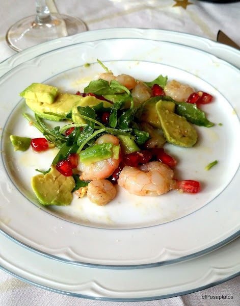 Pretendiendo hacer una ensalada diferente y fresca , visualmente llamativa pero que no quite protagonismo al plato principal de la comida.Utilizando frutas fresca y que combine los sabores.Esta es la propuesta.RECETAS SIMILARES: ENSALADA DE SALMÓN CON VINAGRETA DE FRESÓN Y RÁBANOS.FUENTE: Bistro de JennaINGREDIENTES150 g. de gambas.6 huevos de codorniz.Un pomelo rosa.Un aguacate.Rúcula.Una granad ...