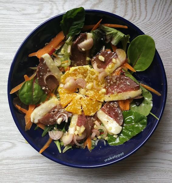 La ensalada que os traigo para nuestra cita mensual con Tus Recetas, es muy apropiada para esta época y la vinagreta de naranja con la combinación de jengibre y miel, la hace muy especial y da un toque delicioso a cualquier ensalada, hoy con el pato curado la hace muy interesante. En lugar de magret de pato curado en casa se puede utilizar el jamón de pato que ya viene elaborado y que encontramos ...