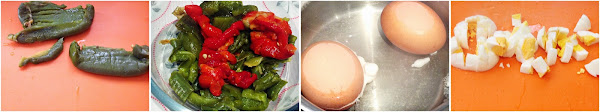 A parte, pon en el horno el pimiento verde hasta que se haga. Yo aprovecho y hago una escalivada con pimiento verde, pimiento rojo y berenjenas.