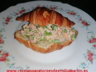 Pollo,Lechuga,Palitos de cangrejo,Maiz dulce,Mayonesa,Kepchut,CoñacPor otro lado hacemos la salsa rosa mezclando en igual proporción kepchut y mayonesa y le añadimos un chorrito de coñac.