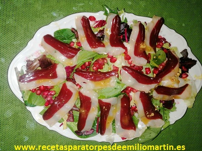 En otra sartén caliente ponemos el jamón, vuelta y vuelta, para que se haga unos segundos por cada lado. Lo ponemos en un plato, a un lado.