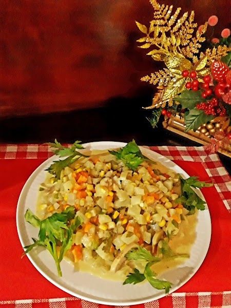 2tazas mayonesa1taza de yogurt natural3cdas cebolla picada fina3cdas apio picado fino1cda salsa inglesa1cda mostaza1cda azúcar1cda jugo de limón1cdita de salmedia cdita de pimienta250grs papas peladas,picada en cuadritos y hervida2zanahorias grandes peladas,picada en cuadritos y hervida1lata grande hongos rebanados escurrida1lata grande maíz dulce escurridas1lata grande palmito escurrido y picado ...