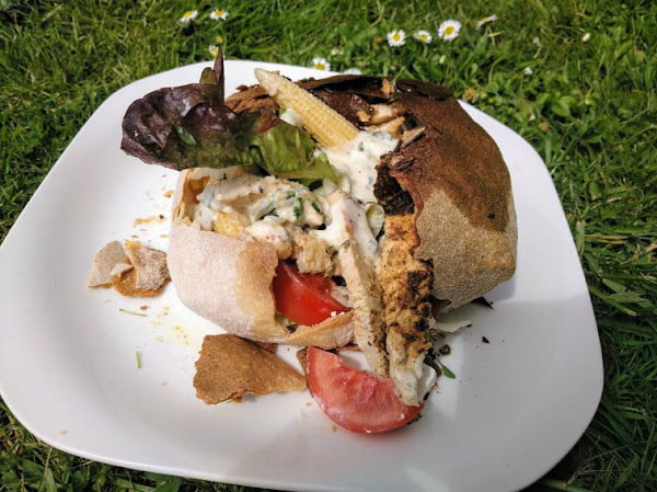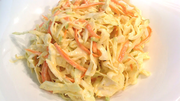 3)Para preparar la salsa, mezclamos la nata (crema de leche) con una cucharadita sopera de mostaza, medio ajo picado una cucharada sopera de vinagre, la albahaca y un poquito de sal a gusto. Removemos bien la mezcla.