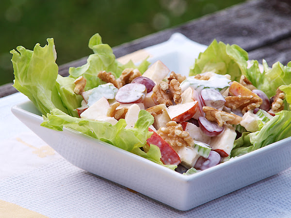 Achicoria 1 unidad pan de molde 4 rebanadas queso de cabra 600 gr. tallo de apio 2 unidades hojas de apio nueces 50 gr. aceite de nuez 3 cucharadas vinagre de vino tinto 3 cucharadas ajo 1 dienteLavar y escurrir bien la achicoria y ponerla en una ensaladera. Mezclar todos los ingredientes del aliño e incorporarlos después a las hojas de achicoria y remover. Tostar el pan de molde. Colocar el queso encima y poner bajo el grill del horno a fuego moderado 3 ó 4 minutos. Trasladar a la ensaladera y espolvorear con tallos de apio troceados y nueces peladas. Decorar con algunas hojas de apio y servir.