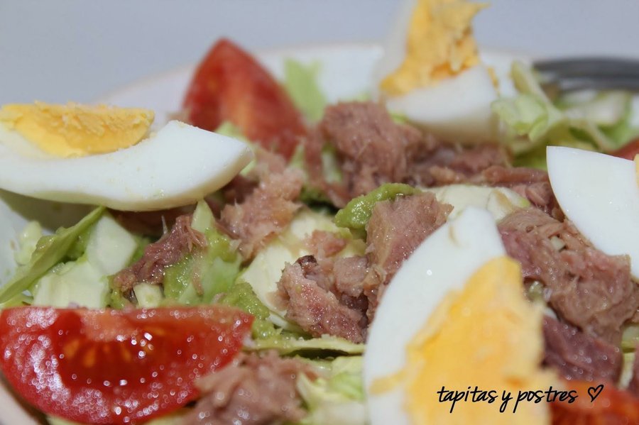 Desde mi blog Tapitas y postres viene esta ensalada con sabor mexicano. El que le da el guacamole que sirve para aliñar este plato de col rallada al que le añadiremos tomates, atún y huevo cocido. Podemos usar guacamole comprado o prepararlo nosotros mismos. En cualquier caso os sorprenderá el sabor que le da a esta ensalada. En mi blog tenéis todos los detalles para prepararla.