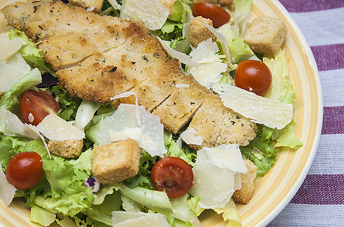 Empezamos con la ensalada César que puedes ver en el blog Lemon and Tangerine, donde además de incorporar vegetales también incluye pollo y queso.