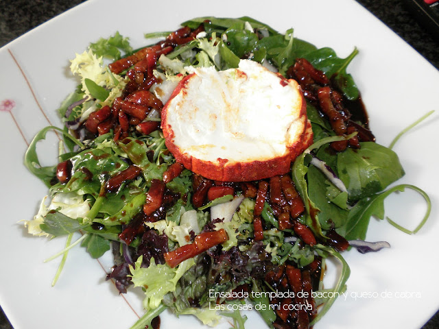 La combinación del bacon y el queso de cabra hace de esta ensalada un plato gourmet perfecto para celebraciones especiales y no dejará a nadie indiferente. Puedes verla en el blog Las cosas de mi cocina.