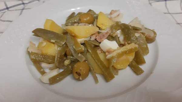 Una receta facilísima para preparar una ensaladilla de patata con aceitunas riquísima, ideal para el verano, y muy completa y sana por sus ingredientes. Nosotros la comemos mucho en mi casa, fresquita está buenísima, y con una carne o un pescado a la plancha, es una comida perfecta. También es perfecta como aperitivo; no me digáis que no os parece buena idea, tomarla con unos piquitos, colines o regañás, y una buena cerveza???