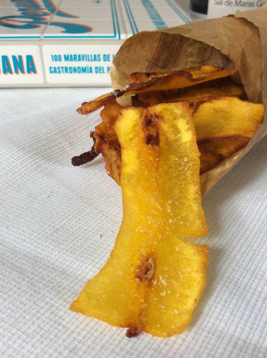 Desde el blog Patty´s Cake, la sugerencia son estos Chips de plátano frito. Con el nombre ya te he dicho todo. Se trata de láminas de plátano, con su pizca de sal y fritos. Una maravilla que prepararás en un boleo.