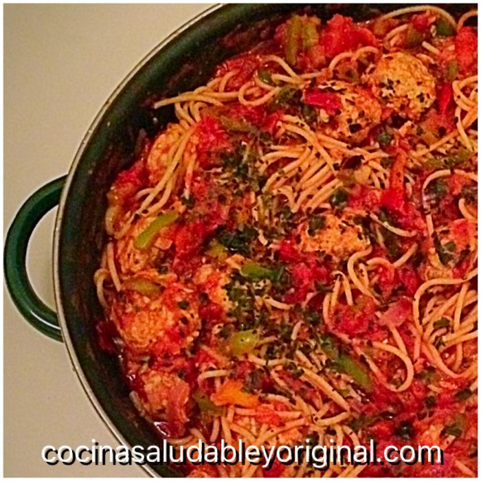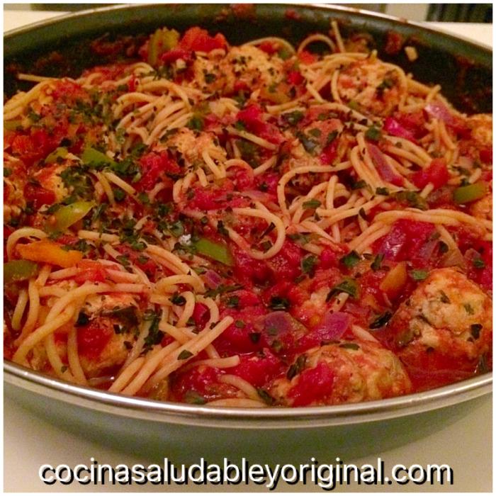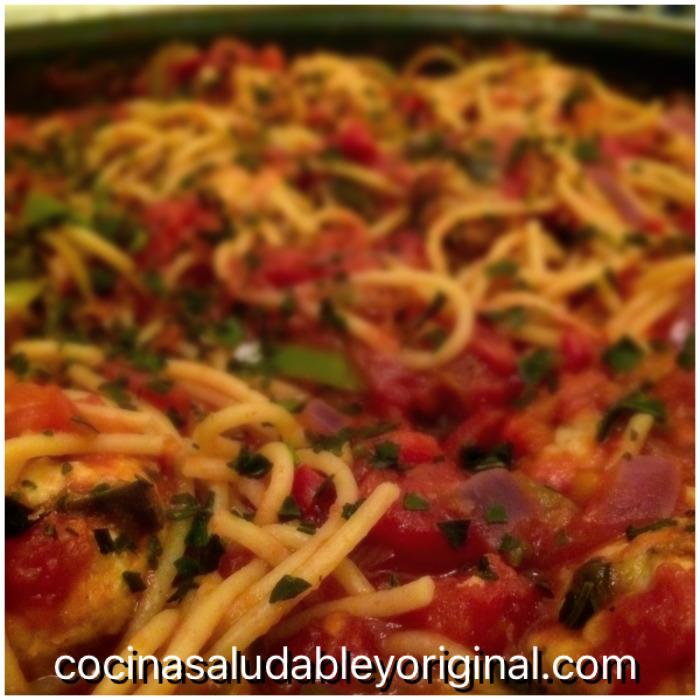 Espero que os haya gusto esta receta saludable y original de espaguetis con salsa de albóndigas de pavo y berenjena