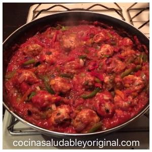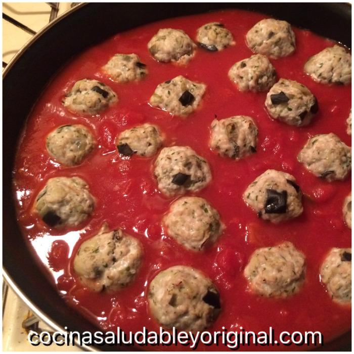 Yo os traigo un plato totalmente inventado por mi, las albóndigas si que había visto diferentes recetas para no hacerlas de ternera o cerdo y, al final, me he decidido por estas albóndigas de pavo y berenjena ya que pienso que ala berenjena les dará una textura más jugosa.