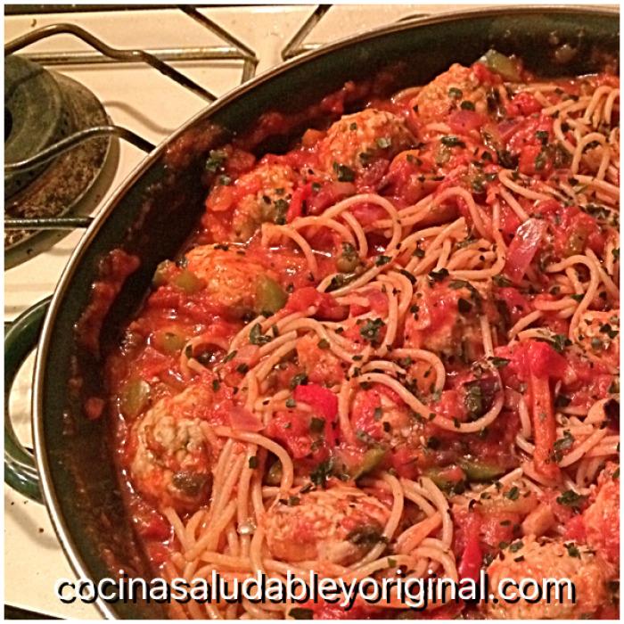Bueno, ¡Empecemos con la receta de espaguetis con albóndigas de pavo y berenjena !