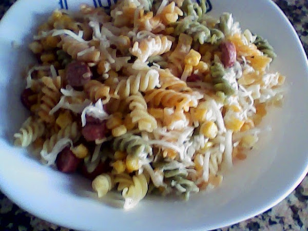 3 puñaditos chiquitines de espirales de pasta de colorines