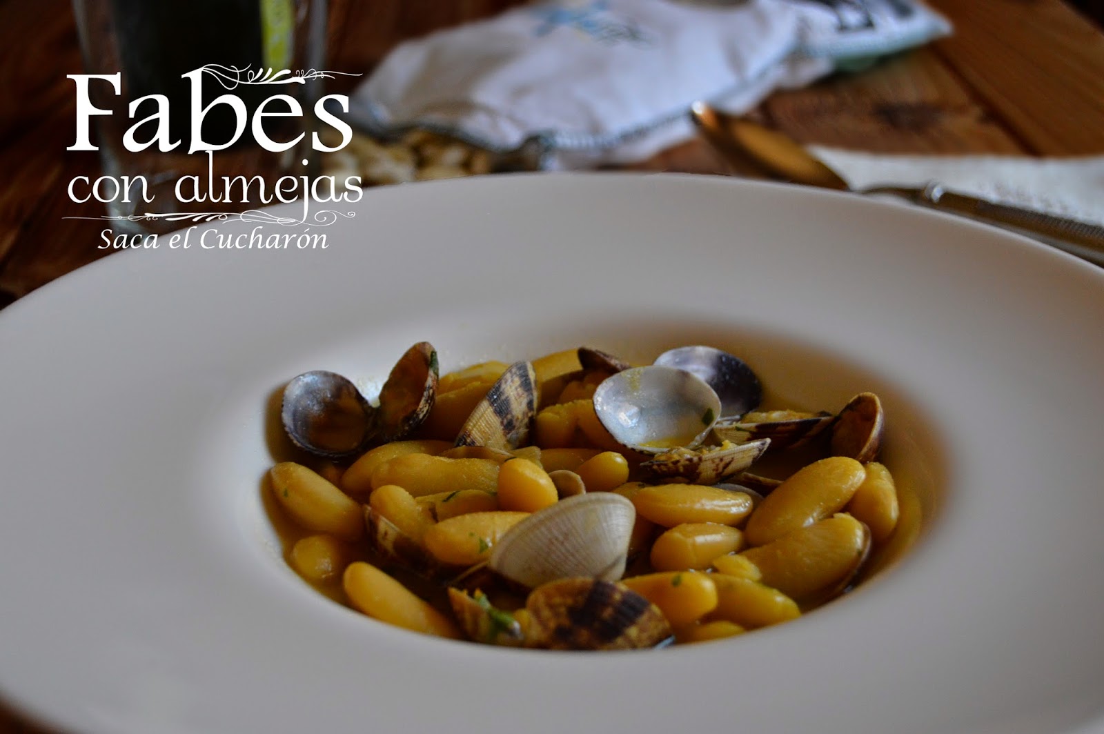INGREDIENTES para 4 personas 400 gr fabes 1/2 kg almejas de carril 1 cebolla pequeña 1 cabeza de ajos 1 hoja de laurel 1 vasito de vino blanco 1 vasito de aceite de oliva Sal, pimienta y perejil picado Unas hebras de azafrán Caldo de pescado (mejor si es casero) ELABORACIÓN Ponemos las fabes en remojo desde el día antes. Las cubrimos de agua en una cazuela y les damos un hervor. Tiramos el pri ...
